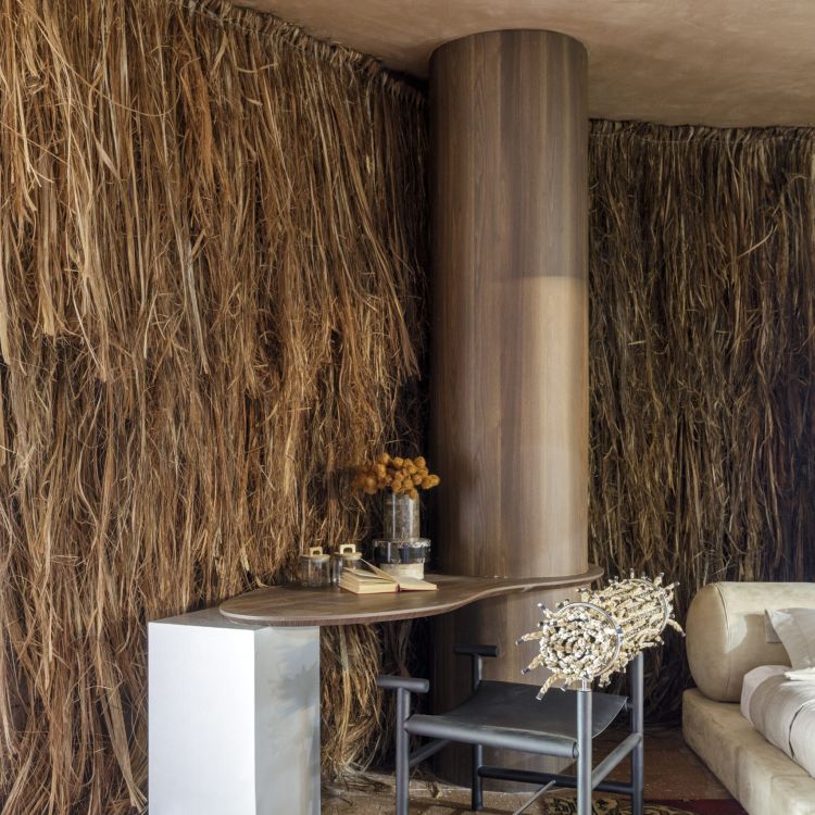 Era muito importante termos cortinas e materiais que tivessem texturas diferentes, que dessem um toque mais artesanal mas ao mesmo tempo casassem com todo o conceito e toda a narrativa do nosso projeto”